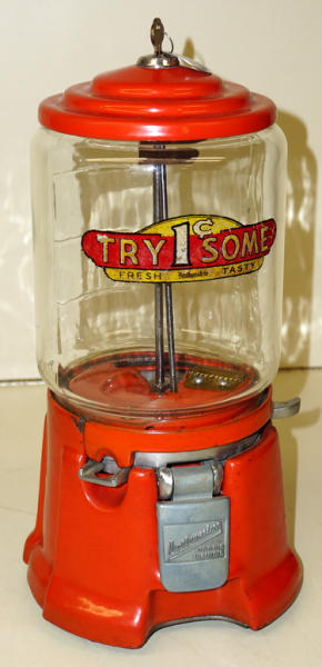 matches lot #101, just a little smaller and in red, nice original, great original label on the globe and has the key, 14" tall