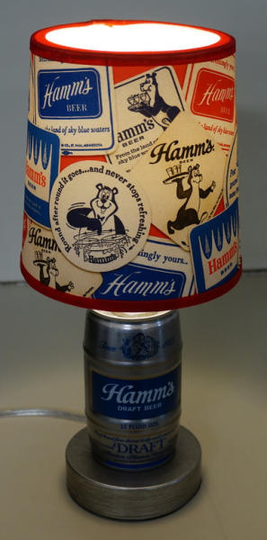 Original barrel can custom made into a lamp with custom Hamm's shade, really nicely done, 13" tall