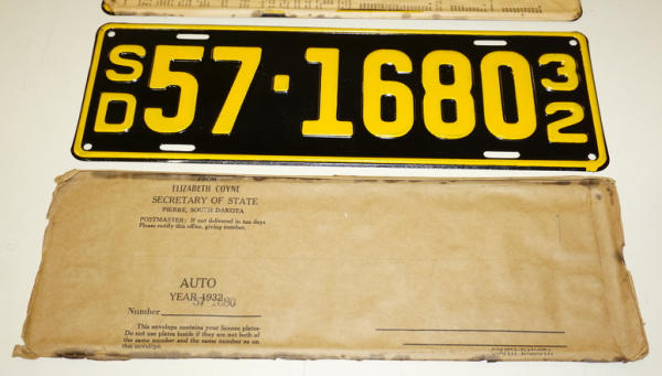 Plates are mint and unused, one has the original paper still on the face that should come off with a little work; if you have a '32 Hot-Rod, this would be a perfect set of plates!