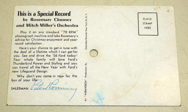 has some wear, record is printed right onto the postcard, pretty unique automobile advertising piece!