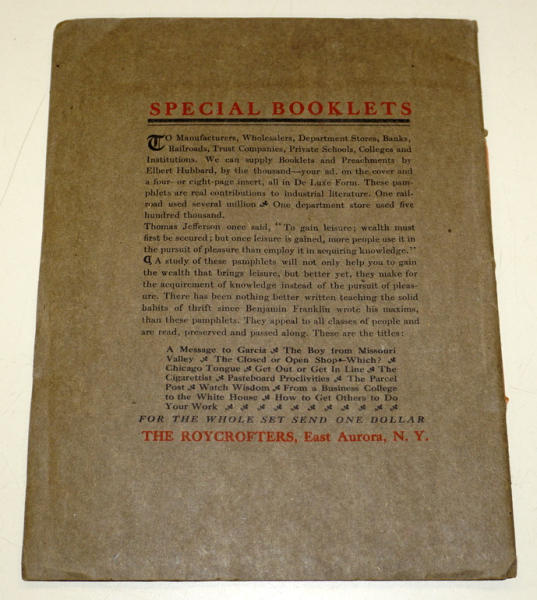 16 pages, clean and nice, some chipping on the edges of the cover, Roycroft was known later for their Arts & Crafts furniture