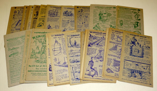 each 7.5"x4", these were premiums inside cereal boxes, looks like about 30+ cards, all to go