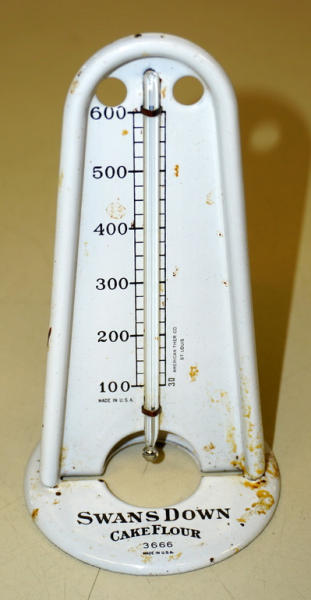 5.5" tall, needs a cleaning, unique piece designed to go inside the oven, tube looks good with real mercury inside