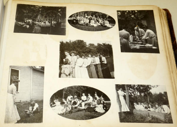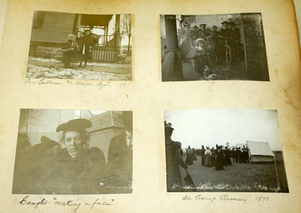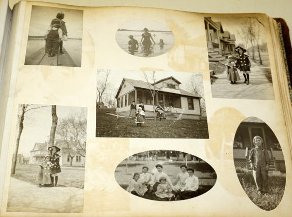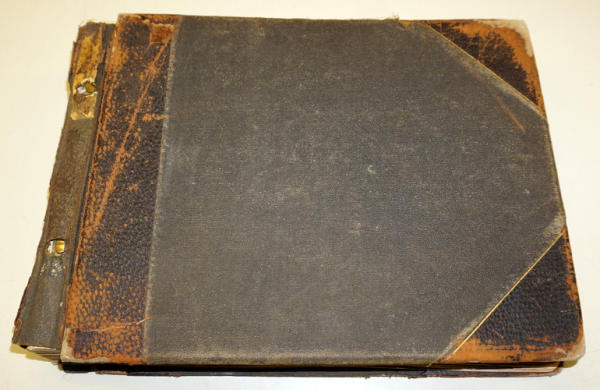 looks to be an early 1900's family photo album, possibly from Norway, has some water damage and general wear, looks to be 200+ images, album has a loose cover