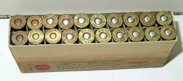 full box of 20 rounds; appears to have two different styles of bullets; box is extremely nice shape for age;