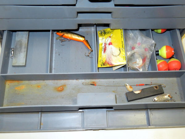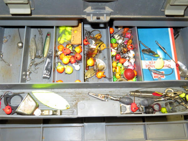 includes tons of hooks, jigheads, weights, swivels & more; box needs a cleaning