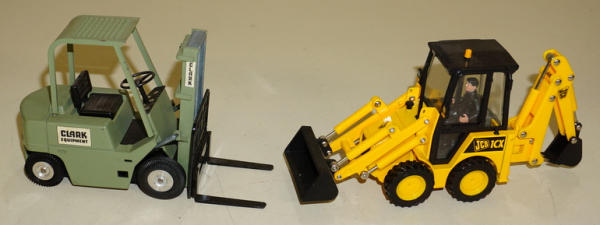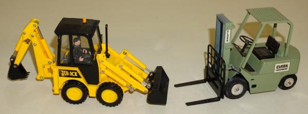 both plastic& metal, forklift is 1/25th scale, 2x the money