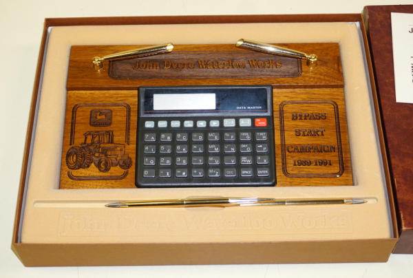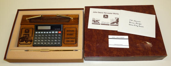 NIB, larger than most desk sets, box is 11"x14", really nice piece, even has the original card sent from Harvester works