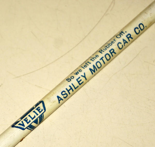 NOS, factory made with no eraser because "the Velie Man makes no mistakes", has some discoloration from age, but overall nice