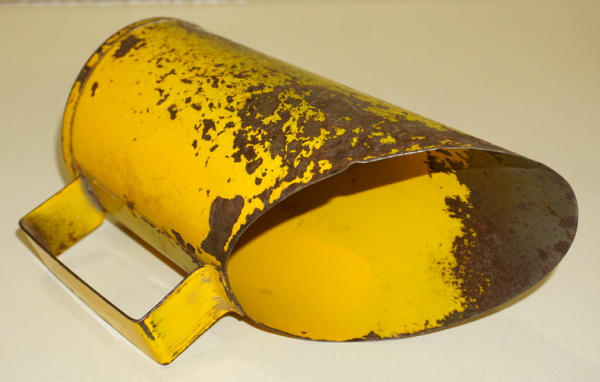 this is the smaller variation of grain scoop, advertising is good, but has pretty heavy paint loss and chips from use, not perfect, but still a great piece of JD advertising