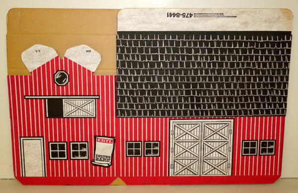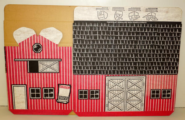no liner, outside box only to make a barn, NOS and never assembled, some light fading on one side