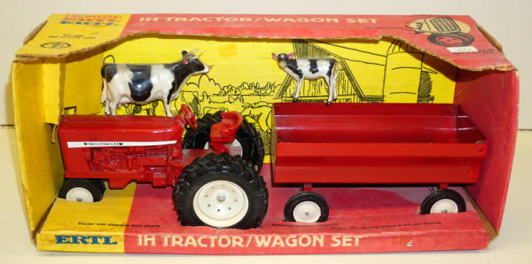 wide plastic wheels on the tractor, mint toys, has the cattle, box has light wear
