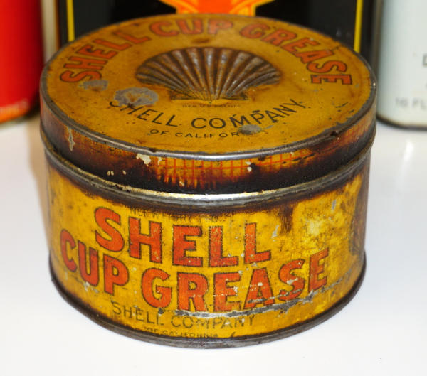 includes really early 1lb grease; the black can is a new reproduction, rest are original, all to go