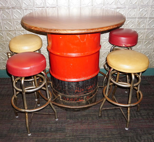 Table top is 41" across, older used stools, all to go; pickup in Fargo only