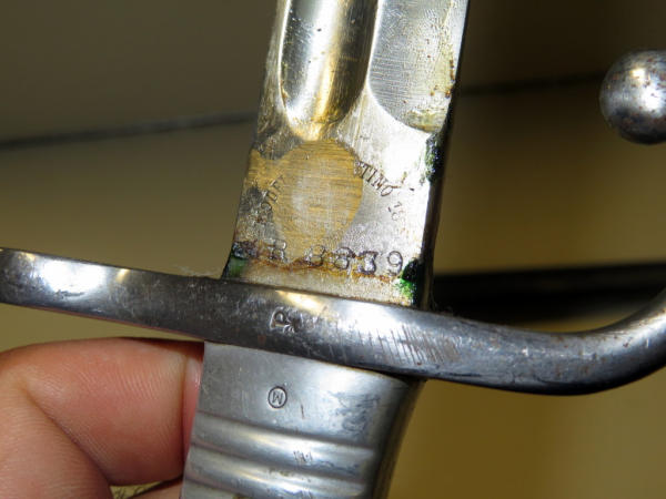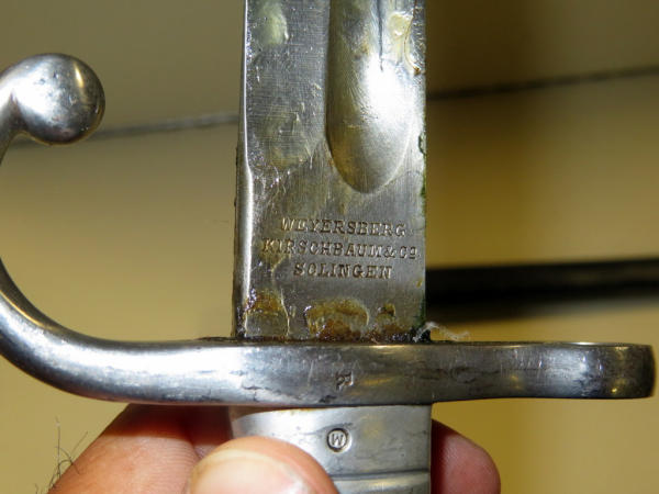 aluminum grips; 15.75" single blade; made in Germany by Weyersburg; crest has been ground off when it was sold as surplus; SN#B8839