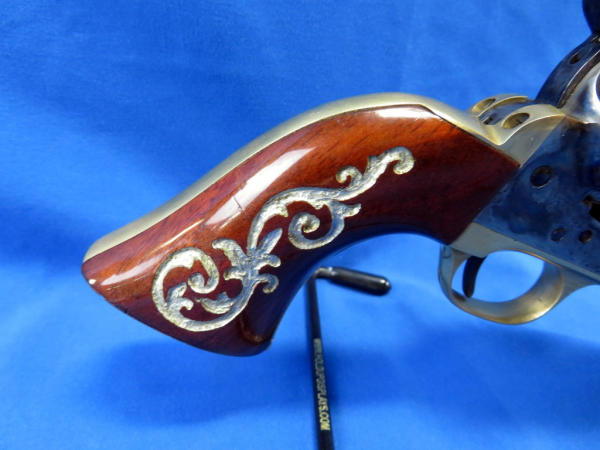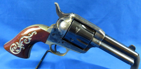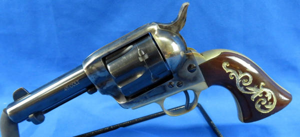 3.5" Bbl.; case hardened receiver; custom wood grips; made in Italy; very heavy and nice looking gun; brass frame; SN#137212