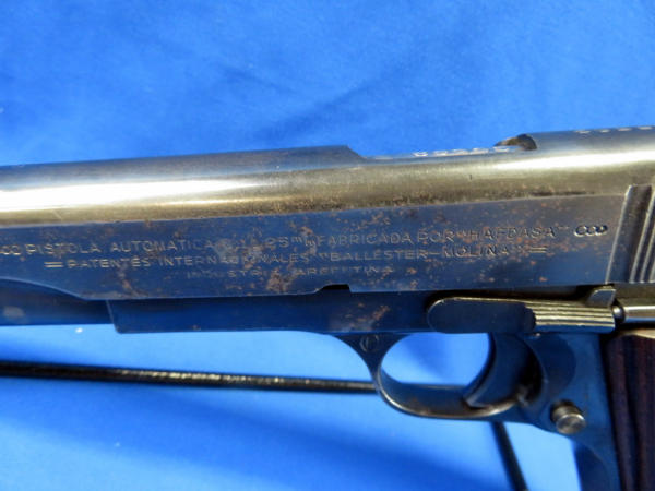 missing the magazine; has some bluing loss; 5" stainless barrel; no import marks; not positive on the model; made in Argentina; SN#35592