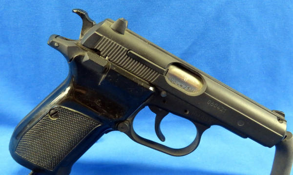 no magazine; 3.75" stainless barrel; black plastic grips; import marked; made in Czech; marked she88; SN#080421