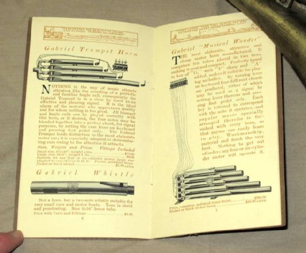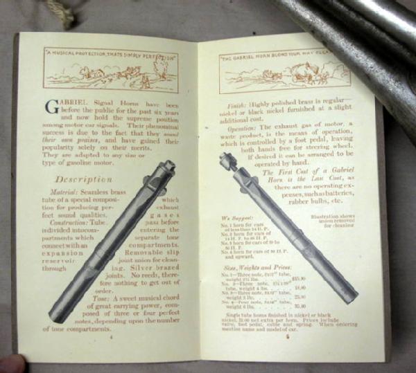 Horn is 18" long, great original finish and still works. Pocket catalog shows all the different horns available, but does not include this horn, dated 1911, and has 14 pages, great set