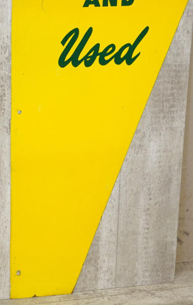 33"x60", nice condition, one heavy scratch on one side and some light discoloration in the logo, reverse side has a little more wear, rates 8 & 8.5 condition overall