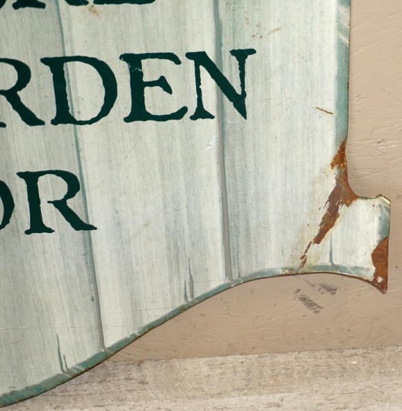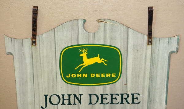 scuffs and scratches on both sides, one corner is a little bent and has some paint loss, original brackets are still attached, but no hanger, 41"x41"