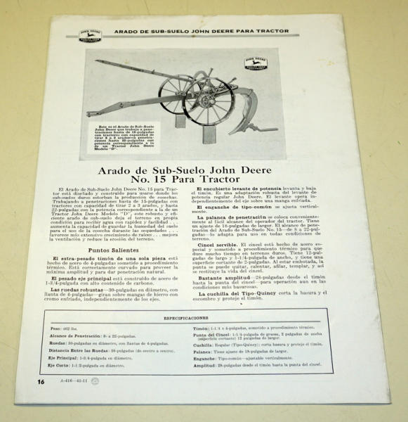 A-416-41-11, 16 pages, larger format, full of plows, printed in Spanish for the Mexican market, printed in the USA