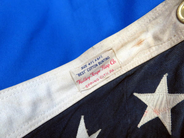 made by Valley Forge Flag Co.; has some mouse chews & staining; good look though; 4'x6'