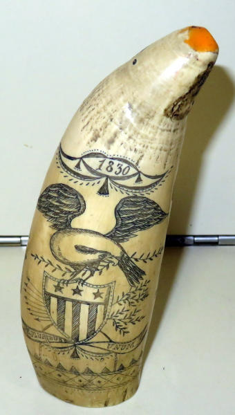 great detail, looks like a tooth maybe; has 1830 date on it but I highly doubt it's that old; 6" tall