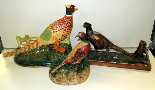not positive, but believe the one w/stump is some kind of lighter; door stops are cast iron and lighter is cast aluminum; all heavy; some paint flaking on lighter; biggest one is 11" tall; sell for one money