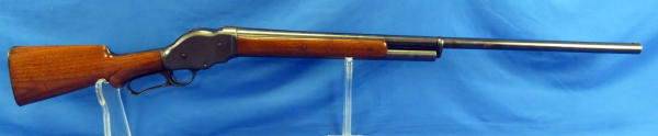 32" round BBL; smooth action; wood is very nice w/good color & gloss; believe barrel has been reblued at one time; 2-7/8" chamber; made in USA; SN#74328