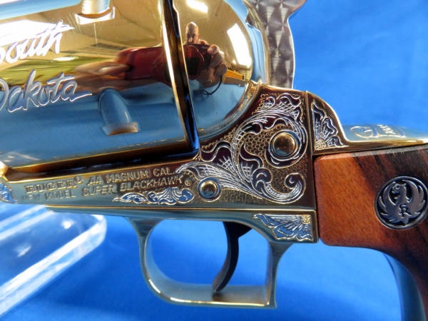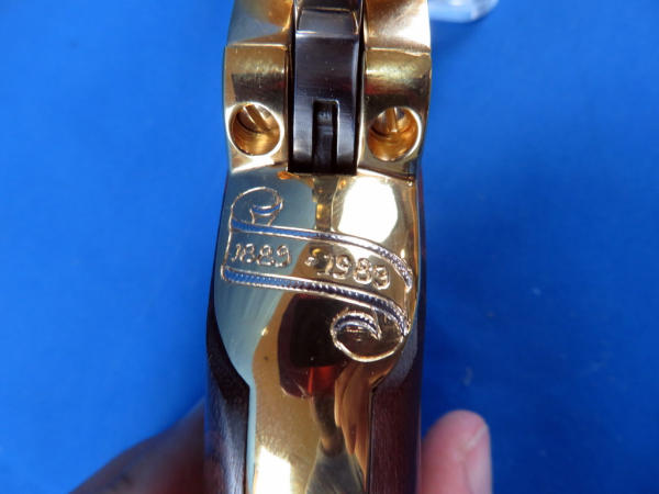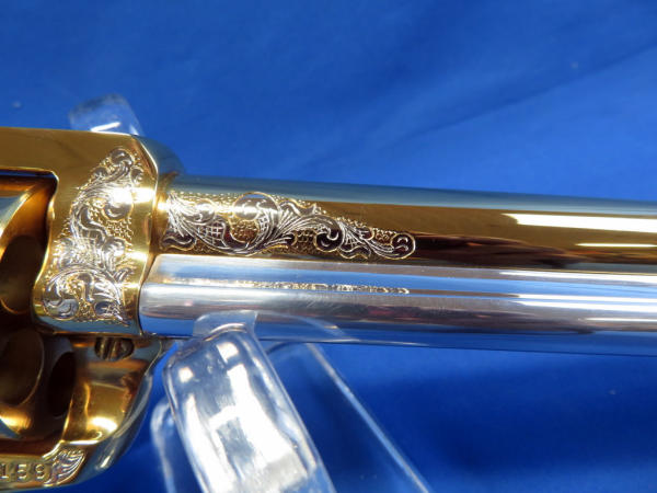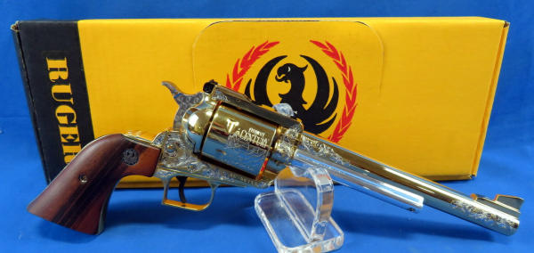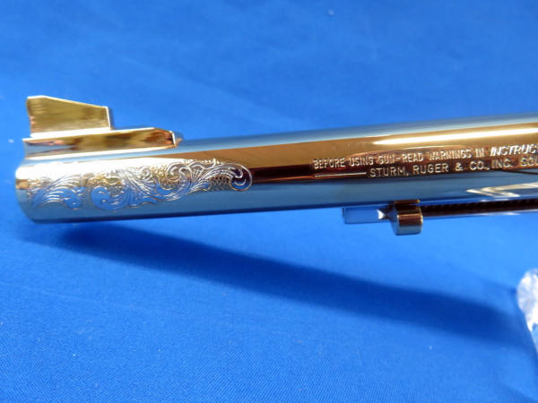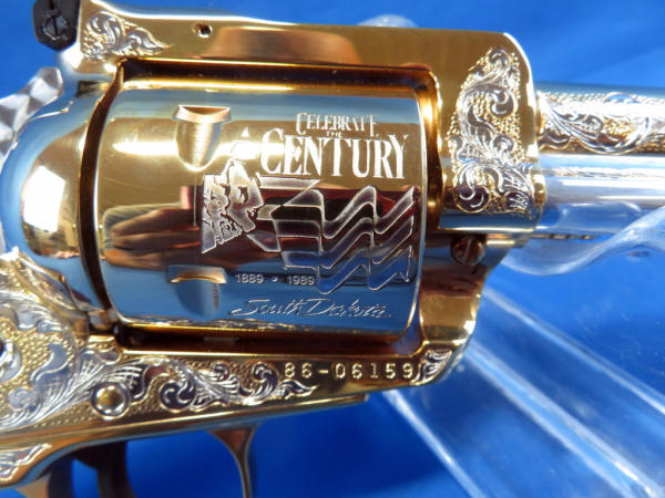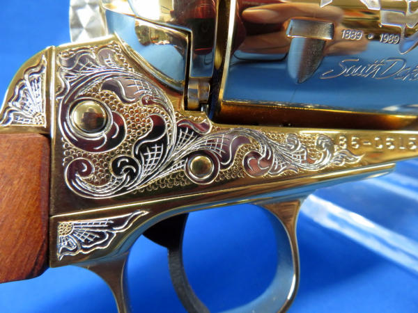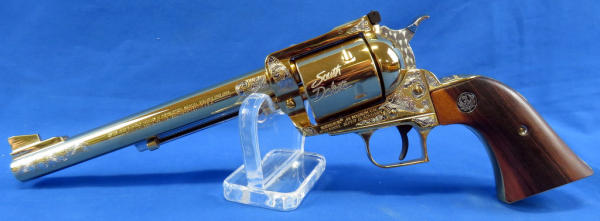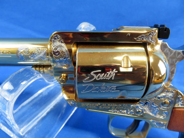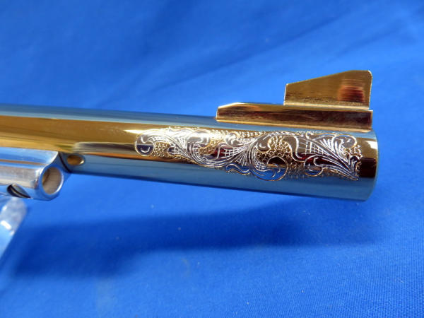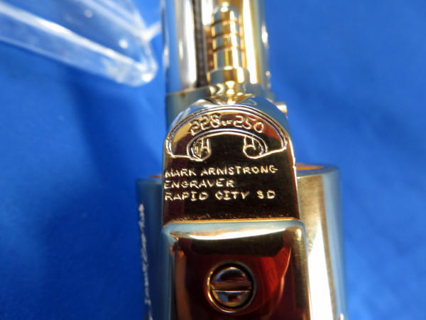 WOW, one of the most beautiful revolvers we've ever handled! 7.5" gold plated barrel; highly engraved; wood grips; has original box & outer box; smoot cylinder; No.228 of 250! Engraved by Mark Armstrong of Rapid City, SD; made in USA; you will not be disappointed in this firearm! SN#86-06159