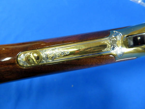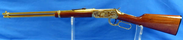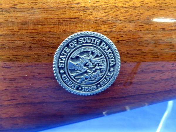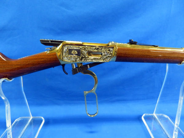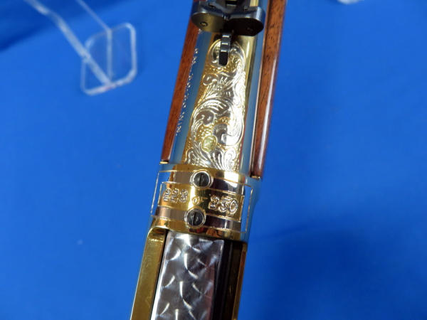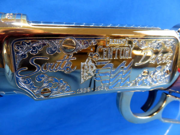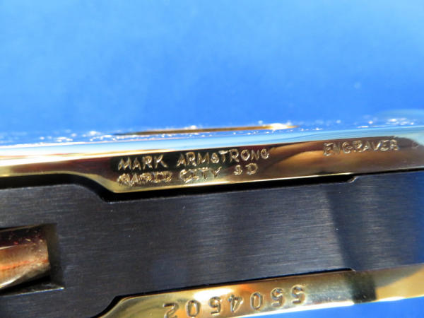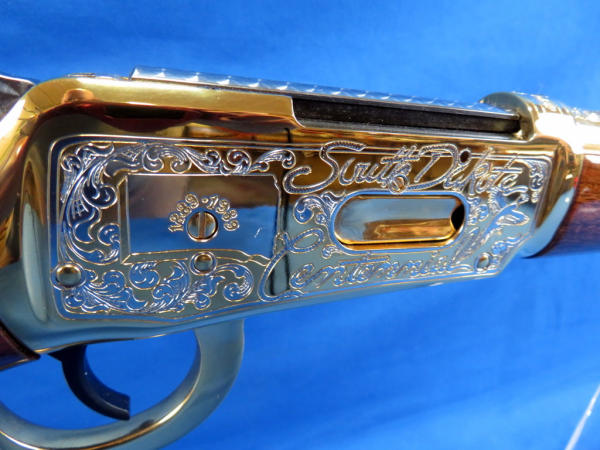 20" Gold plated barrel; beautiful finish and amazing engraving; mint & unfired; original; box; SD state seal emblem on stock; engraved by Mark Armstrong of Rapid City, SD; made in USA; No. 228 of 250 made; SN#5504502