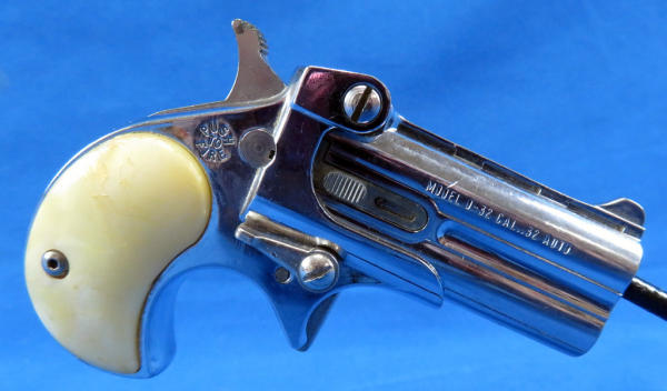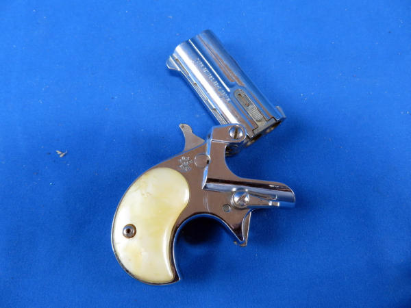 2.25" barrels; imitation mother of pearl grips; very nice nickel finish; easy break action; made in USA; SN#426001