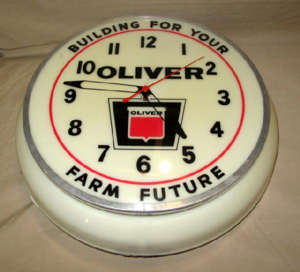 Plastic with a glass face, another old original out of the same dealership, 16" diameter, very clean and it works