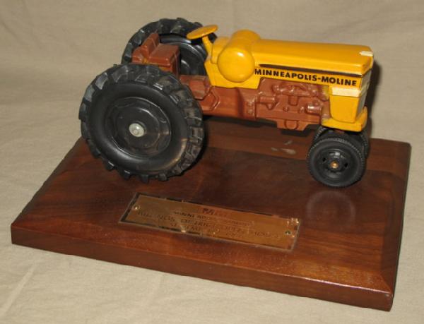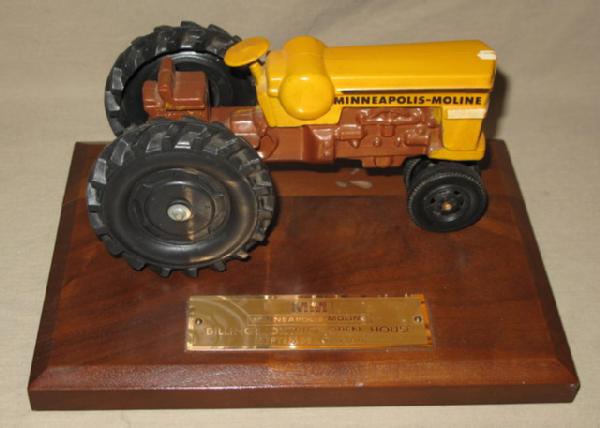 Super rare & unique piece of MM history! Original Ertl Brown Belly LP Junior Tractor mounted on a nice plaque with brass name plate, Toy and display are all about mint, great piece