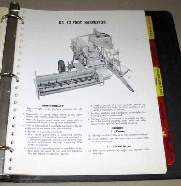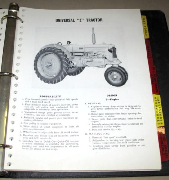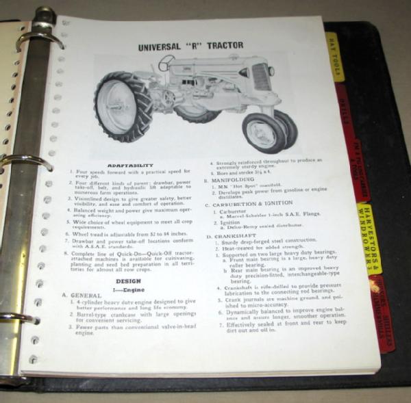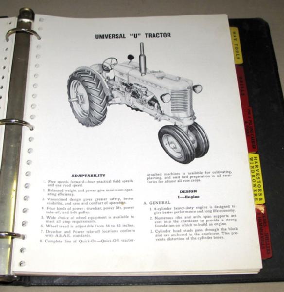 Another super clean and quality book. Over 1/2" of material, dates around 1945, has the R, Z, ZTE, Standard U, & GTB Tractors along with all kinds of info on Implements, Combines, Harvestors & more, very clean & near mint!