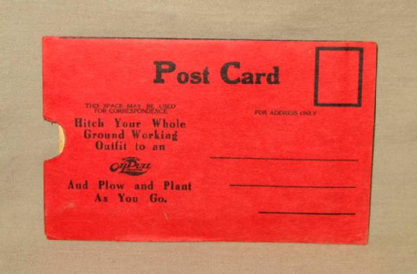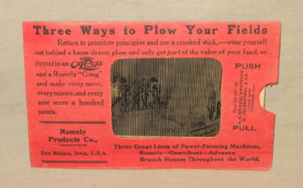 very unique piece with a "moving" scene in the middle when you push/pull the cardboard insert, postcard size, has light wear