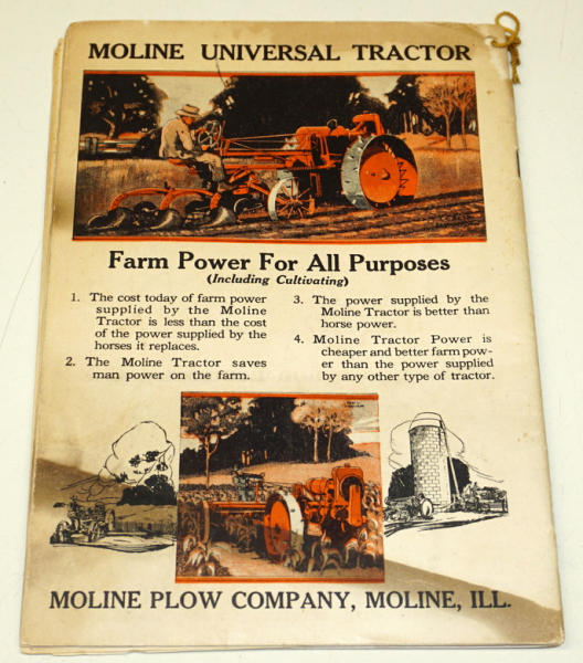 34 pages, has the Moline Universal & the Stephens car inside, small piece missing out of the cover and general wear overall