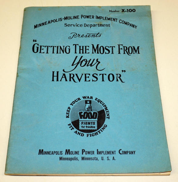 46 pages, dated coded 1944, has some general wear, shows maintainance on the Harvestor combine