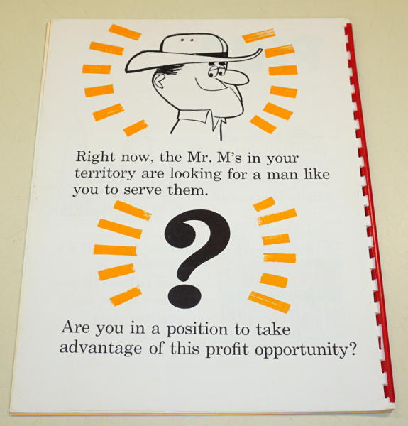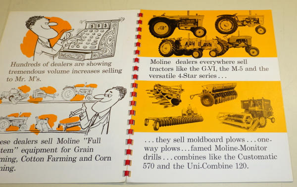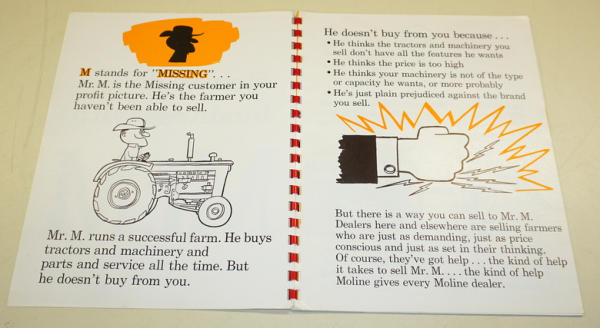 about 40 pages, shows the M5 tractor and others of that era; dealer training book on how to sell to the customers, clean and nice