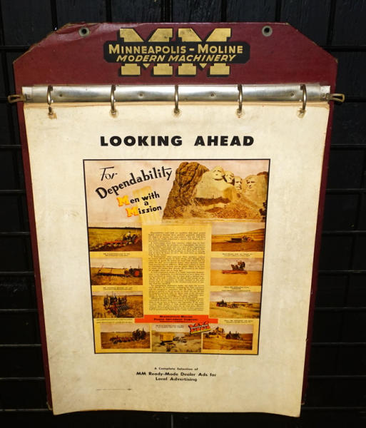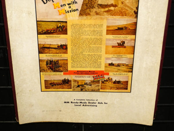 18"x27", unique, about 25 pages showing different ads available to the dealers, has some discoloration to the pages from age and some wear on the backing