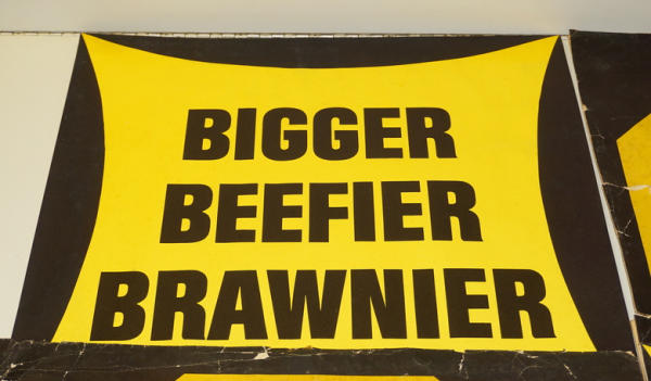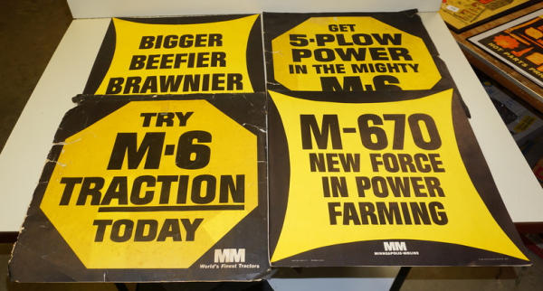includes 4 20"x20" paper signs that fold in half to hang over a string and make a pennant banner, fairly heavy wear to most of the pieces, all to go