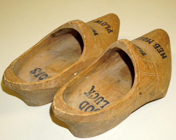 original set of hand-carved wood shoes, some wear, but nice patina, sells as a set