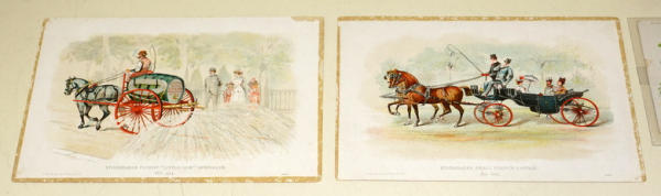 Book is 98 pages with light wear, shows buggies & automobiles, includes 3 trade cards and some other paper advertising, all has some wear, all to go