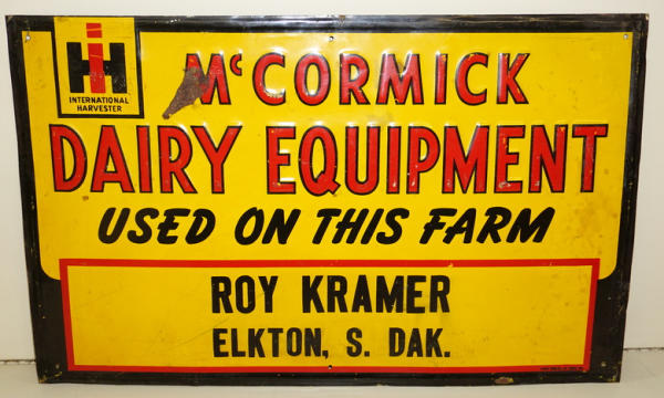 15"x23", has a spot of paint loss by the "M" in "McCormick" along with some scuffs and scratches, rates 7.5 condition overall