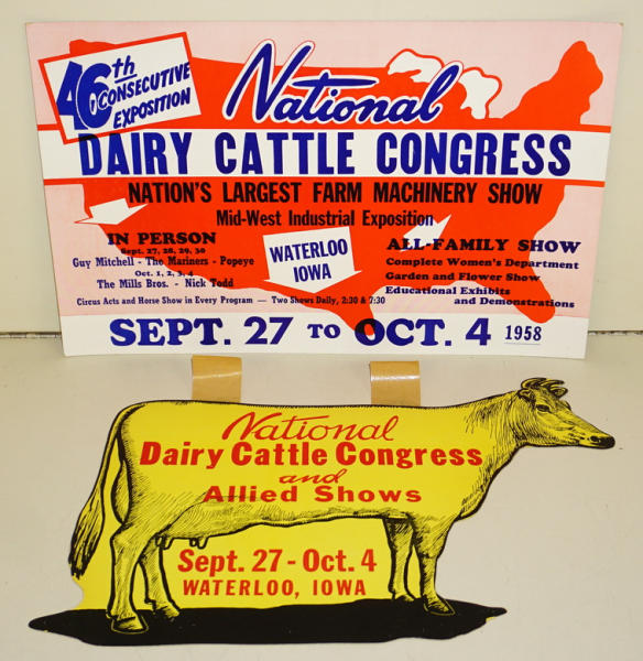 larger sign is 17"x11", Cow is slightly smaller, both NOS and near mint! Sells as a set for one money