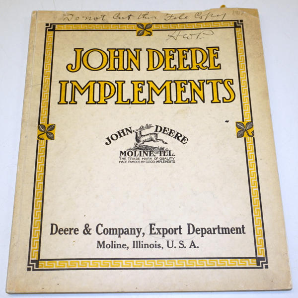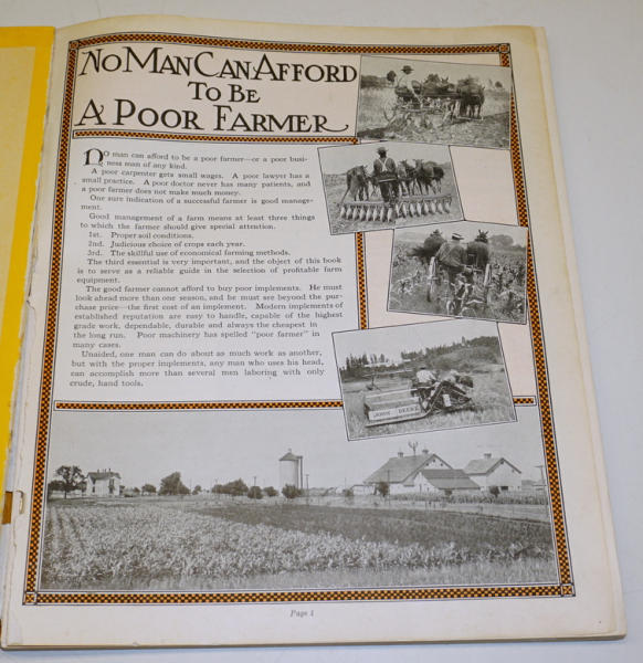 another fantastic piece of sales literature, 156 pages, shows the early model of the DAIN pulling an implement on page 5; has some general wear, cover is torn about 1/3rd down the scene and has some soiling, but overall very good condition, great piece, full size catalog