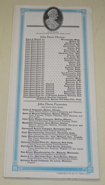 Series B-47-D & Co., 1916, 4 pages, shows it being pulled by the early model of the DAIN Tractor with the side seat, wow!