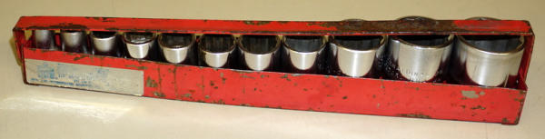 complete set, sockets are pretty nice overall, holder has wear and label is pretty faded out, but mostly legible
