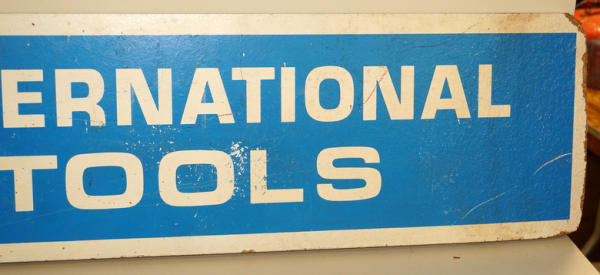 10"x48"x1" thick, pressed board, heavy wear, has some water damage to the end and paint flaking